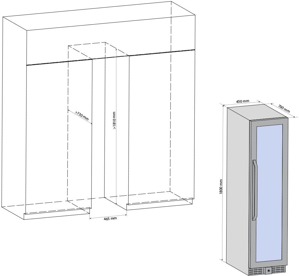 Винный шкаф Libhof Sommelier SMD-105 Black предназначен для хранения при оптимальных условиях бутилированного вина различных сортов в барах, ресторанах, специализированных магазинах, подсобных складских помещениях, а также в домашних условиях. Модель оснащена холодильной камерой с 2 независимыми температурными зонами, запираемой на ключ распашной дверью на скрытых внутренних петлях, длинной вертикальной рукояткой, прозрачным обзорным стеклом, внутренней сенсорной панелью управления и цифровым дисплеем с синей подсветкой индикации. Корпус выполнен из металла с антикоррозийным покрытием черного цвета и полным остеклением фронта двери, полки и ящик – из массива буковой древесины. В комплект поставки входят 14 полок с направляющими и ящик для бутылок, крепеж для рукоятки, 2 ключа от дверного замка и инструкция по эксплуатации. Особенности: