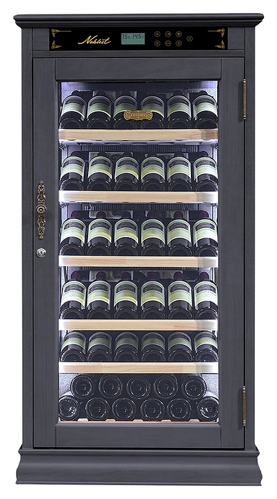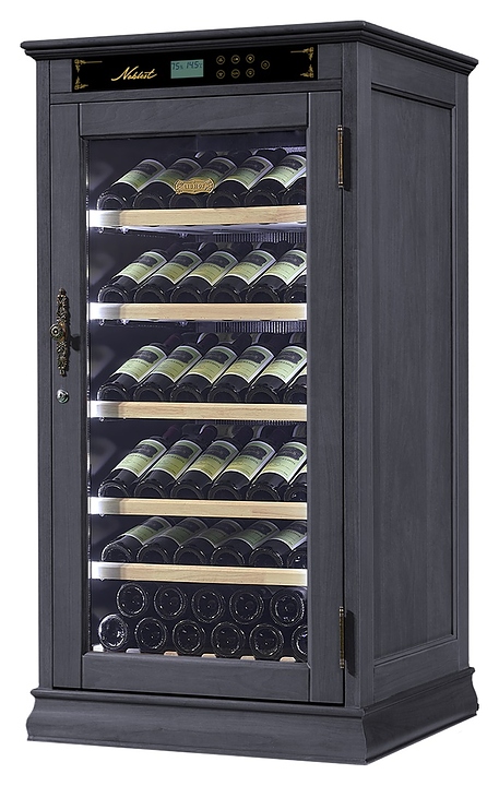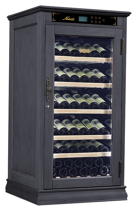Винный шкаф Libhof Noblest NR-69 Black предназначен для хранения при оптимальных условиях бутилированного вина различных сортов в барах, ресторанах, специализированных магазинах, подсобных складских помещениях, а также в домашних условиях. Модель оснащена монотемпературной холодильной камерой, распашной дверью на внешних петлях, прозрачным обзорным стеклом, внешней сенсорной панелью управления и дисплеем индикации. Корпус выполнен из древесины американского дуба с покрытием черного цвета, фурнитура – из металла цвета бронзы с патиной, съемные полки – из массива буковой древесины. Комплектация: