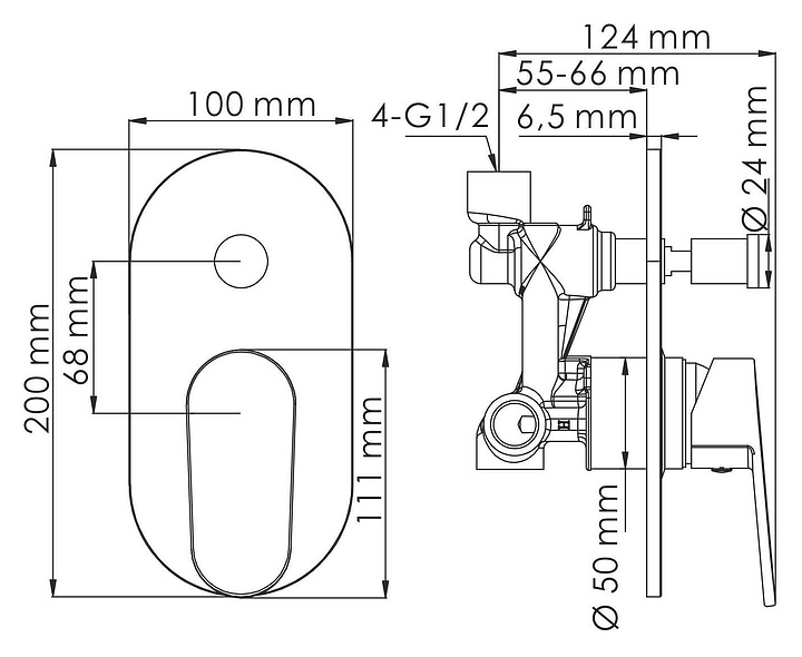 Смеситель для ванны с душем встраиваемый Wasserkraft Donau 5361 хром