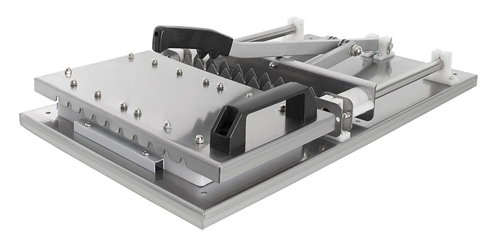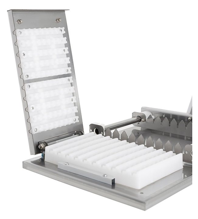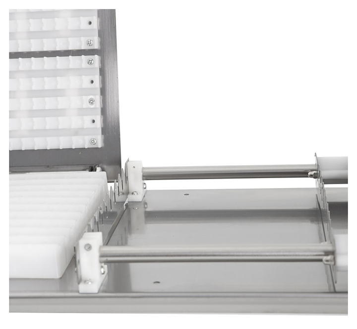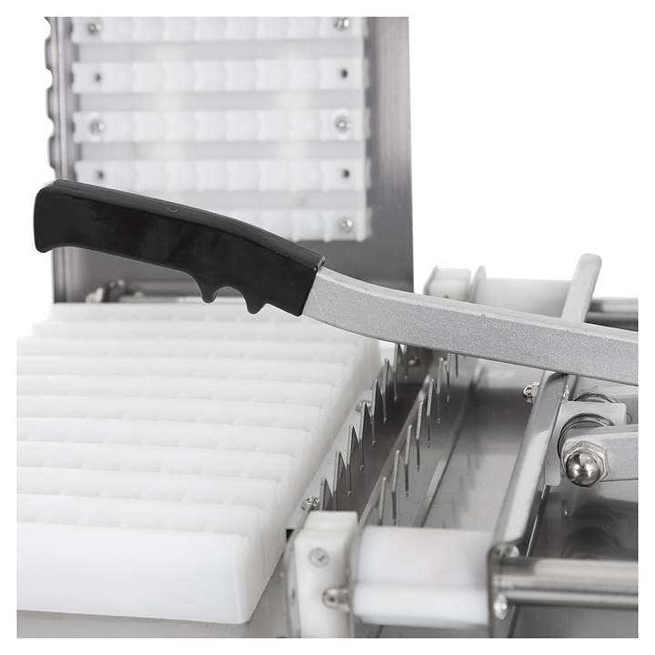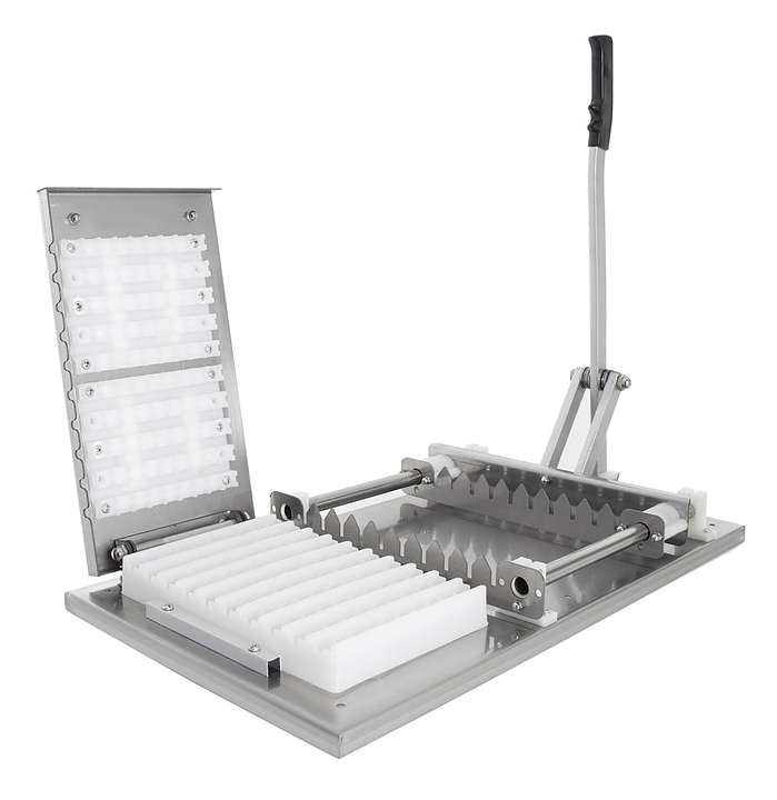 Нанизыватель шашлыка Foodatlas FA-350 используется на предприятиях общественного питания и торговли для единовременного нанизывания шашлыка на 10 шампуров. Корпус и рычаг выполнены из нержавеющей стали, форма - из пластика. Особенности: