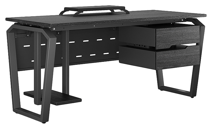 Офисный стол Кобор TB-140/80 black/glazed используется в офисных помещениях и кабинетах руководителей. Модель оснащена опорами в форме обратной трапеции со скошенными верхними углами. Каркас выполнен из металла, выкрашенного в цвет черный муар (RAL9005), столешница – из ламинированной древесно-стружечной плиты (ЛДСП) цвета черный дуб (H3178 ST37). Опции (заказываются отдельно):