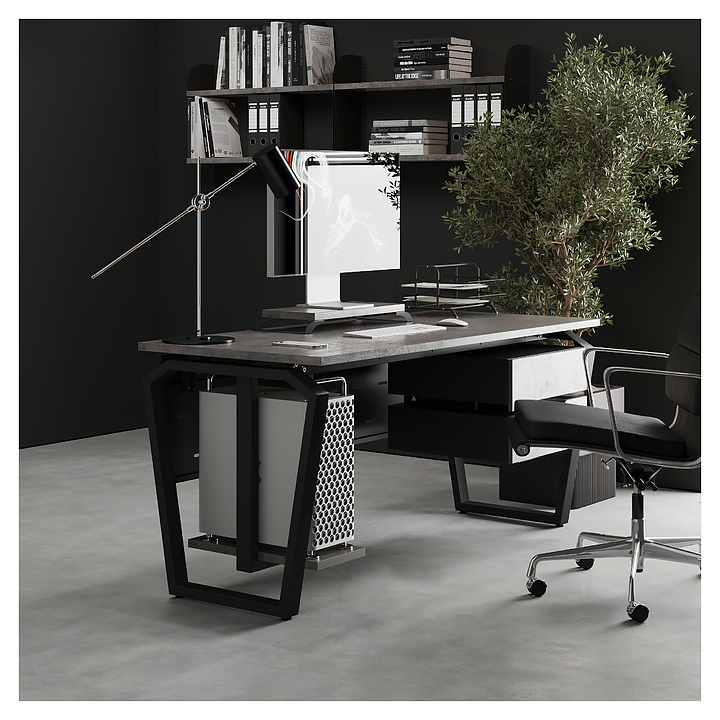 Офисный стол Кобор TB-80/60 black/charlston используется в офисных помещениях и кабинетах руководителей. Модель оснащена опорами в форме обратной трапеции со скошенными верхними углами. Каркас выполнен из металла, выкрашенного в цвет черный муар (RAL9005), столешница – из ламинированной древесно-стружечной плиты (ЛДСП) цвета дуб чарльстон (H3154 ST36). Опции (заказываются отдельно):
