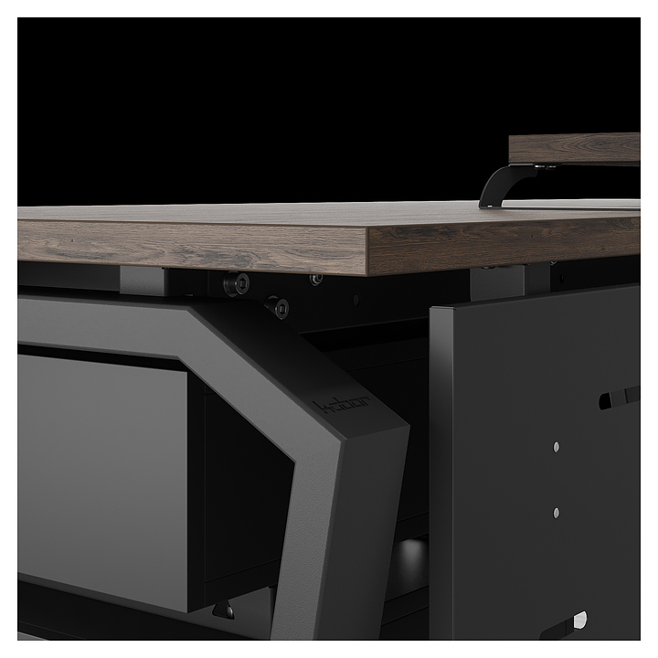 Офисный стол Кобор TB-160/80 black/charlston используется в офисных помещениях и кабинетах руководителей. Модель оснащена опорами в форме обратной трапеции со скошенными верхними углами. Каркас выполнен из металла, выкрашенного в цвет черный муар (RAL9005), столешница – из ламинированной древесно-стружечной плиты (ЛДСП) цвета дуб чарльстон (H3154 ST36). Опции (заказываются отдельно):