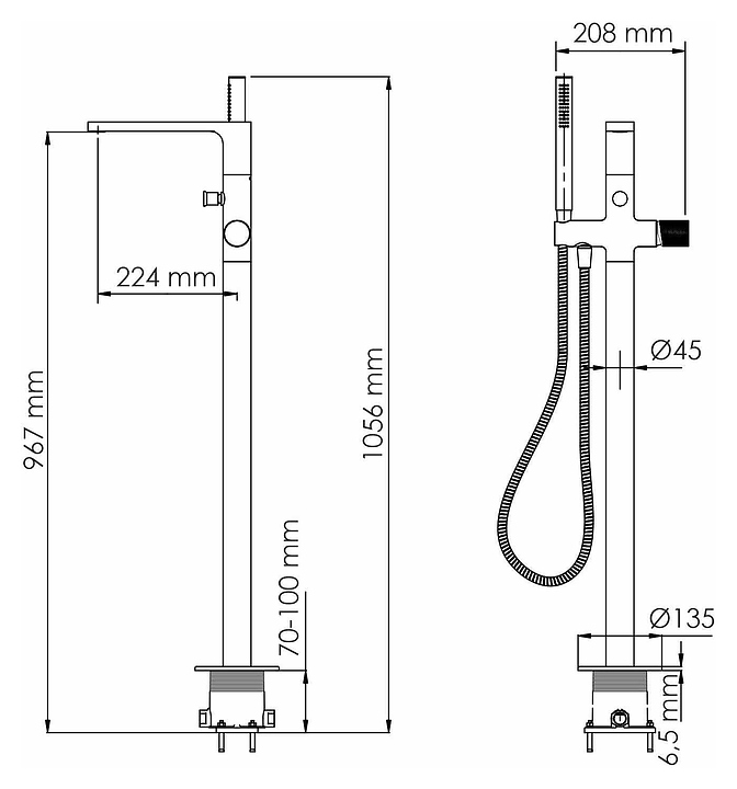 Смеситель для ванны напольный Wasserkraft Mosel 4621 хром