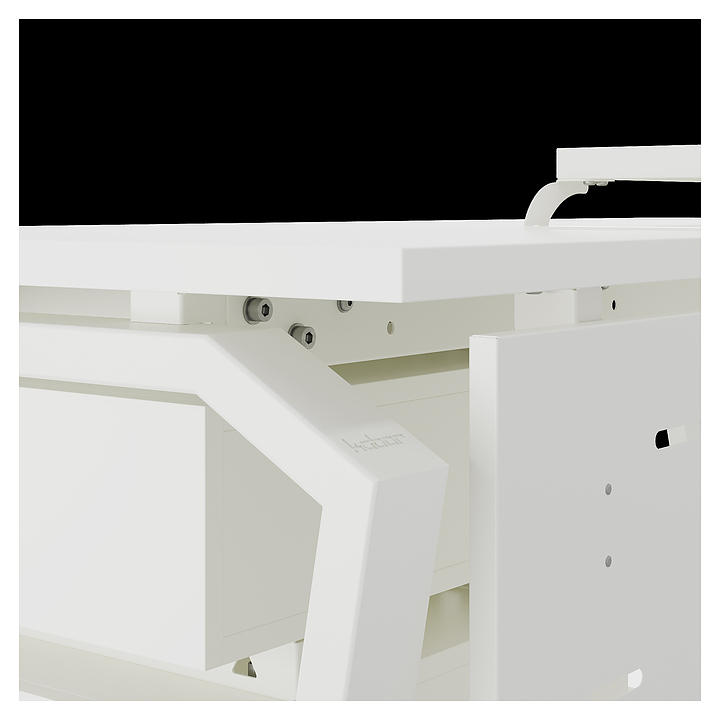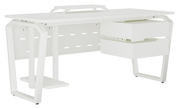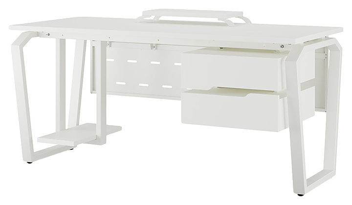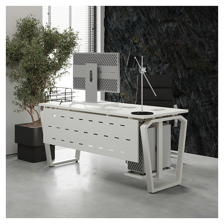 Офисный стол Кобор TB-160/60 white/premium используется в офисных помещениях и кабинетах руководителей. Модель оснащена опорами в форме обратной трапеции со скошенными верхними углами. Каркас выполнен из металла, выкрашенного в цвет белый муар (RAL9016), столешница – из ламинированной древесно-стружечной плиты (ЛДСП) цвета белый премиум (W1000 ST9). Опции (заказываются отдельно):