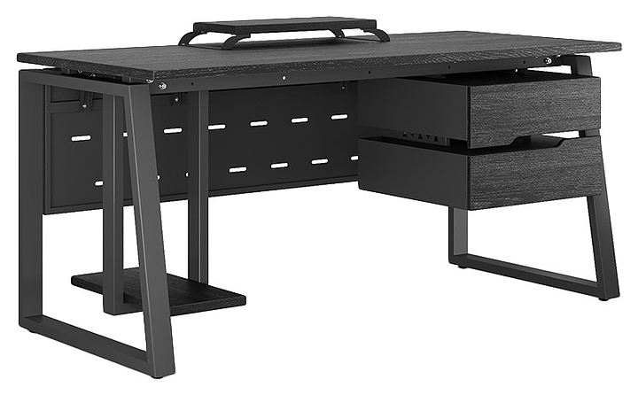 Офисный стол Кобор TS1-180/70 black/glazed используется в офисных помещениях и кабинетах руководителей. Модель оснащена опорами в форме наклонной трапеции. Каркас выполнен из металла, выкрашенного в цвет черный муар (RAL9005), столешница – из ламинированной древесно-стружечной плиты (ЛДСП) цвета черный дуб (H3178 ST37). Опции (заказываются отдельно):