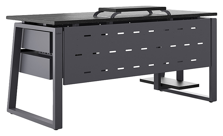 Офисный стол Кобор TS1-180/60 graphite/glazed используется в офисных помещениях и кабинетах руководителей. Модель оснащена опорами в форме наклонной трапеции. Каркас выполнен из металла, выкрашенного в цвет графит муар (RAL7024), столешница – из ламинированной древесно-стружечной плиты (ЛДСП) цвета черный дуб (H3178 ST37). Опции (заказываются отдельно):