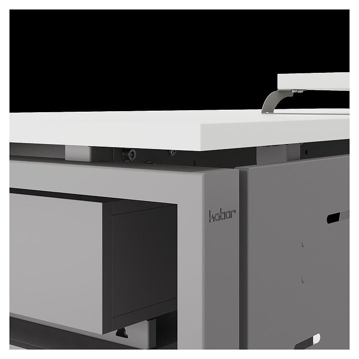 Офисный стол Кобор TS1-80/80 aluminum/premium используется в офисных помещениях и кабинетах руководителей. Модель оснащена опорами в форме наклонной трапеции. Каркас выполнен из металла, выкрашенного в цвет алюминиевый металлик (RAL9006), столешница – из ламинированной древесно-стружечной плиты (ЛДСП) цвета белый премиум (W1000 ST9). Опции (заказываются отдельно):