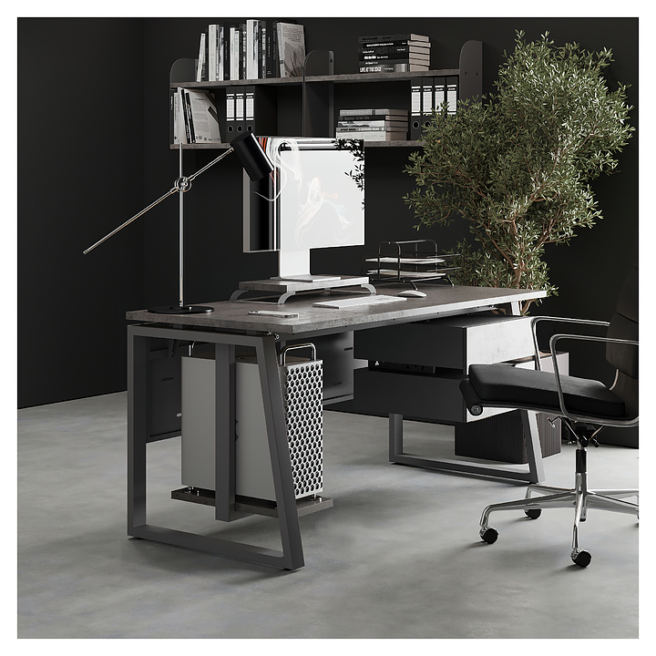 Офисный стол Кобор TS1-80/80 aluminum/chicago используется в офисных помещениях и кабинетах руководителей. Модель оснащена опорами в форме наклонной трапеции. Каркас выполнен из металла, выкрашенного в цвет алюминиевый металлик (RAL9006), столешница – из ламинированной древесно-стружечной плиты (ЛДСП) цвета бетон чикаго (F186 ST9). Опции (заказываются отдельно):