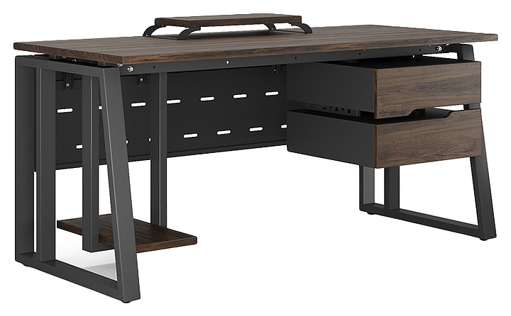 Офисный стол Кобор TS2-100/60 black/charlston используется в офисных помещениях и кабинетах руководителей. Модель оснащена усиленными вертикальными балками опорами в форме наклонной трапеции. Каркас выполнен из металла, выкрашенного в цвет черный муар (RAL9005), столешница – из ламинированной древесно-стружечной плиты (ЛДСП) цвета дуб чарльстон (H3154 ST36). Опции (заказываются отдельно):