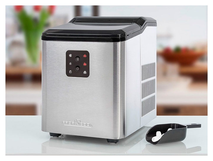 Льдогенератор Profi Cook PC-EWB 1253 предназначен для приготовления пальчикового льда, используемого для охлаждения различных напитков в барах, ресторанах и на других предприятиях общественного питания и торговли. Модель оснащена компрессорным агрегатом, кабелем питания с вилкой, откидной верхней крышкой, расположенной на фронтальной стенке панелью управления с сенсорными функциональными клавишами и светодиодными лампами индикации. Корпус выполнен из нержавеющей стали, корзина и совок – из черного полимера. В комплект поставки входят съемная решетчатая корзина с ручками, совок для льда и 2 съемных кожуха для дренажного отверстия. Особенности: