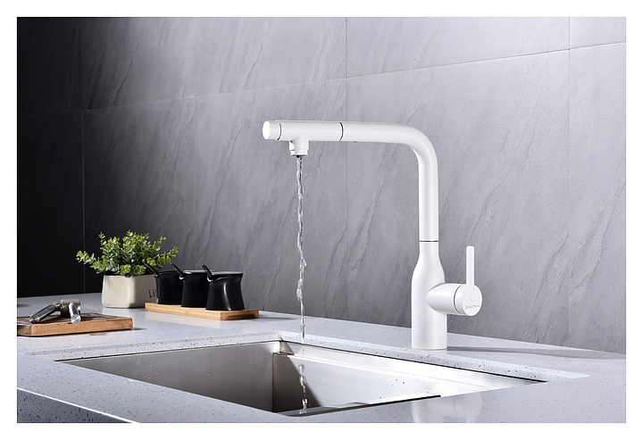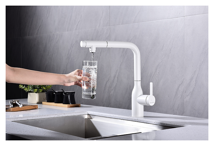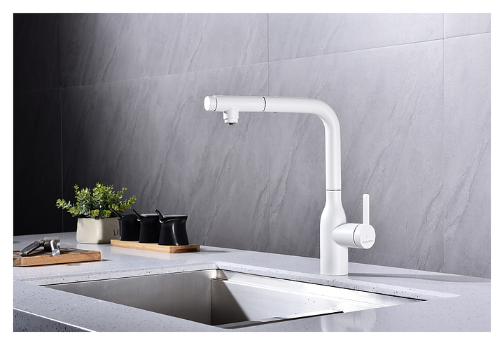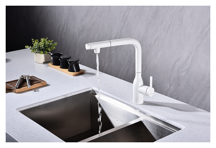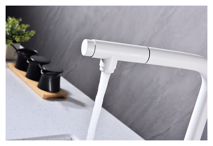 Смеситель Paulmark Viper Vi213105-431 предназначен для подачи горячей и холодной воды в кухонных помещениях. Модель оснащена вытяжным изливом и керамическим картриджем, обеспечивающим плавный ход рычага смесителя, контроль и точность при выборе напора и температуры воды. Фильтрованная вода подается через отдельные трубку и аэратор, что исключает смешивание с водопроводной водой. Изделие выполнено из латуни, отличающейся прочностью, долговечностью и устойчивостью к перепадам температуры. Дополнительные характеристики: