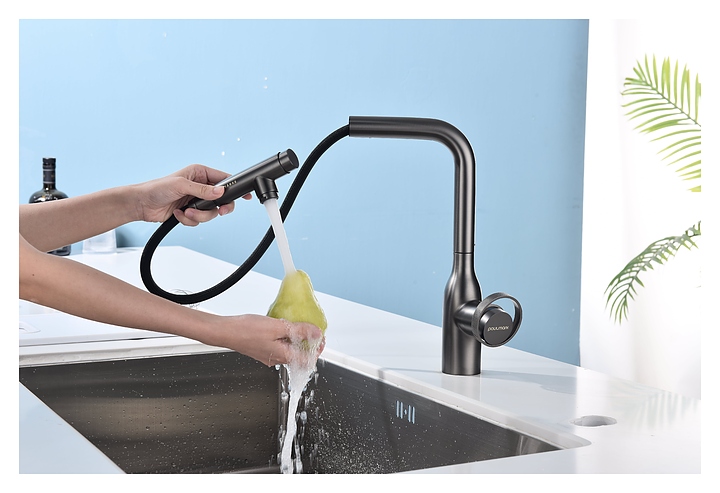 Смеситель Paulmark Urban Ur213104-NI предназначен для подачи горячей и холодной воды в кухонных помещениях. Модель оснащена вытяжным изливом и керамическим картриджем, обеспечивающим плавный ход рычага смесителя, контроль и точность при выборе напора и температуры воды. Фильтрованная вода подается через отдельные трубку и аэратор, что исключает смешивание с водопроводной водой. Изделие выполнено из латуни, отличающейся прочностью, долговечностью и устойчивостью к перепадам температуры. Дополнительные характеристики: