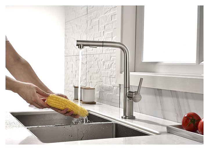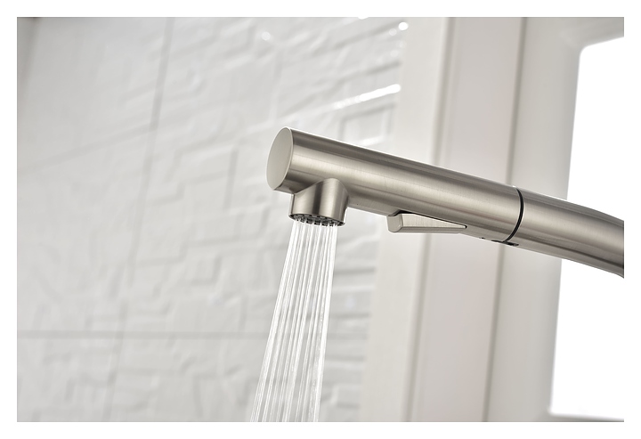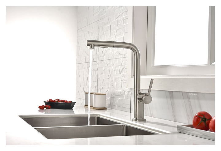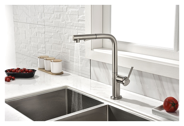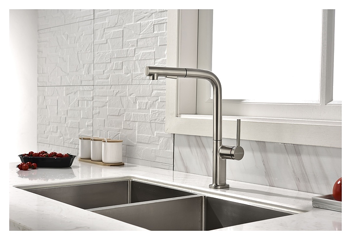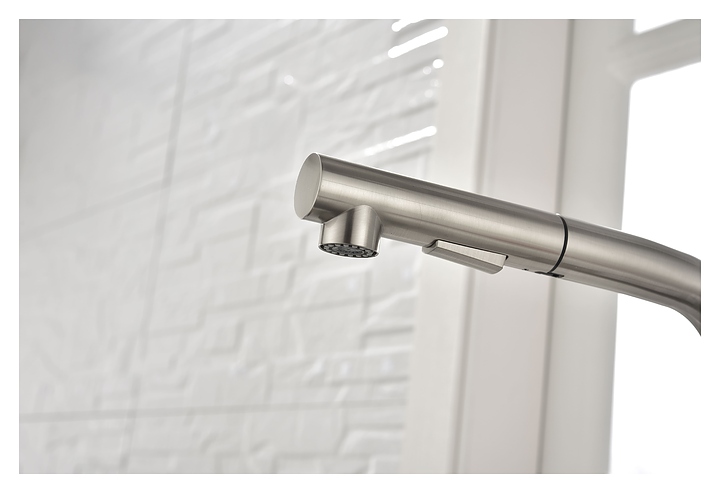 Смеситель Paulmark Neo Ne214419-Ni предназначен для подачи горячей и холодной воды в кухонных помещениях. Модель оснащена вытяжным изливом и керамическим картриджем, обеспечивающим плавный ход рычага смесителя, контроль и точность при выборе напора и температуры воды. Изделие выполнено из латуни, отличающейся прочностью, долговечностью и устойчивостью к перепадам температуры. Дополнительные характеристики: