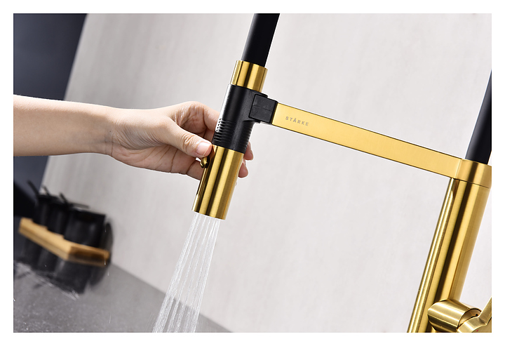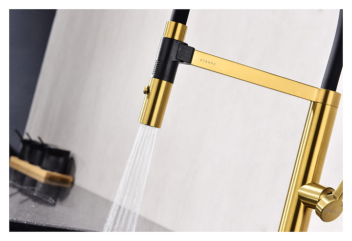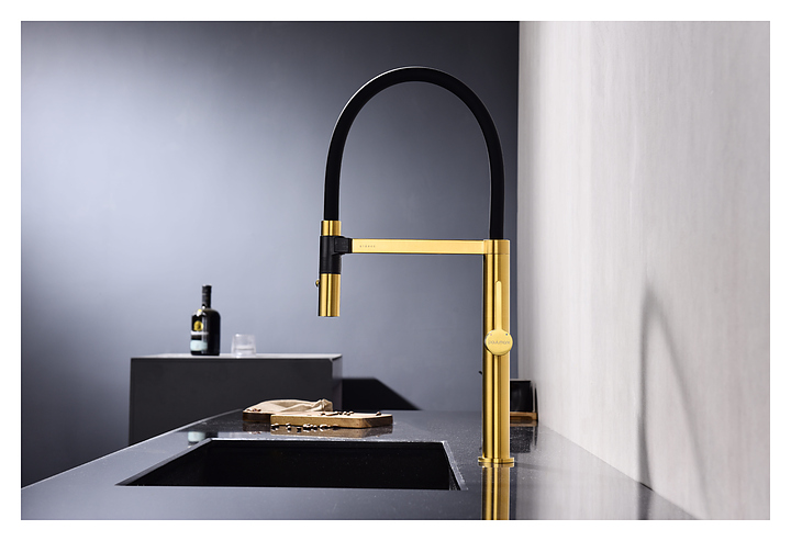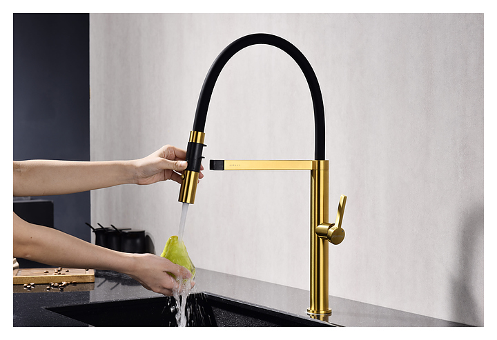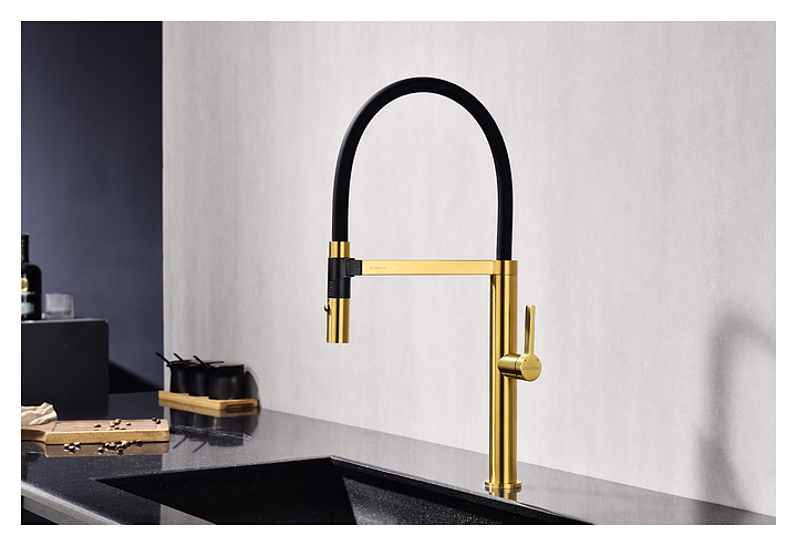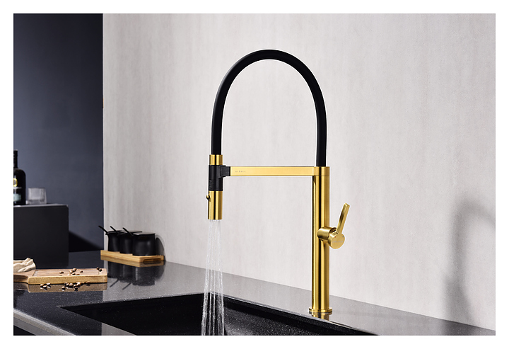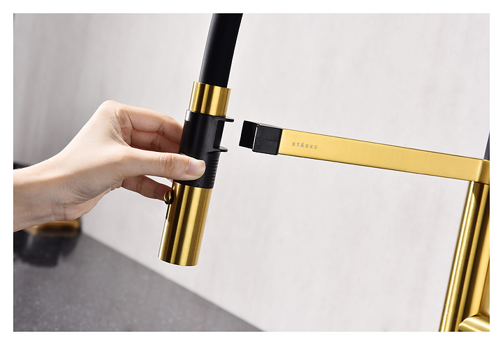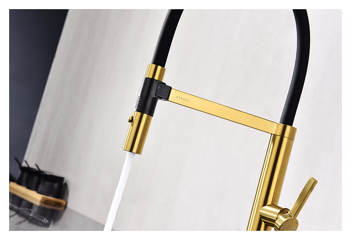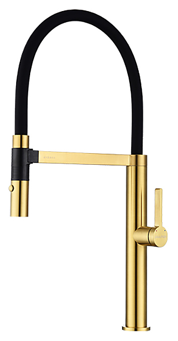 Смеситель Paulmark Leader Le214101-BG предназначен для подачи горячей и холодной воды в кухонных помещениях. Модель оснащена гибким изливом и керамическим картриджем, обеспечивающим плавный ход рычага смесителя, контроль и точность при выборе напора и температуры воды. Изделие выполнено из латуни, отличающейся прочностью, долговечностью и устойчивостью к перепадам температуры, шланг - из силикона. Дополнительные характеристики: