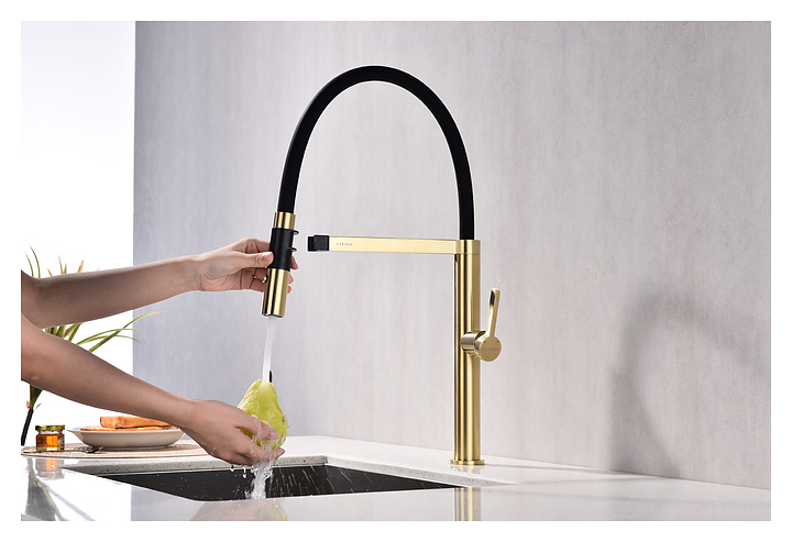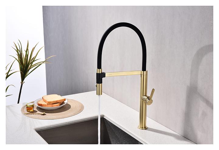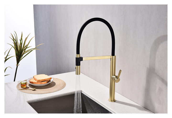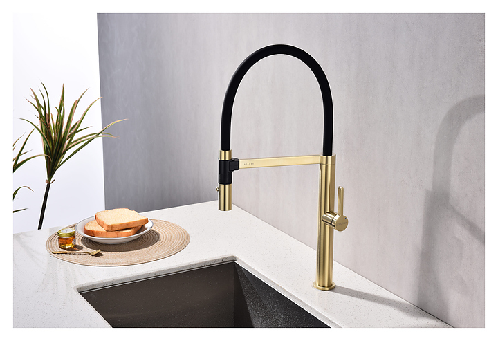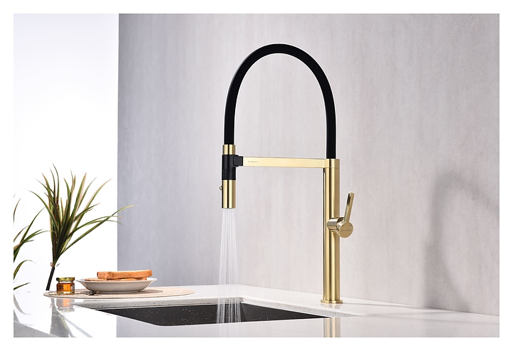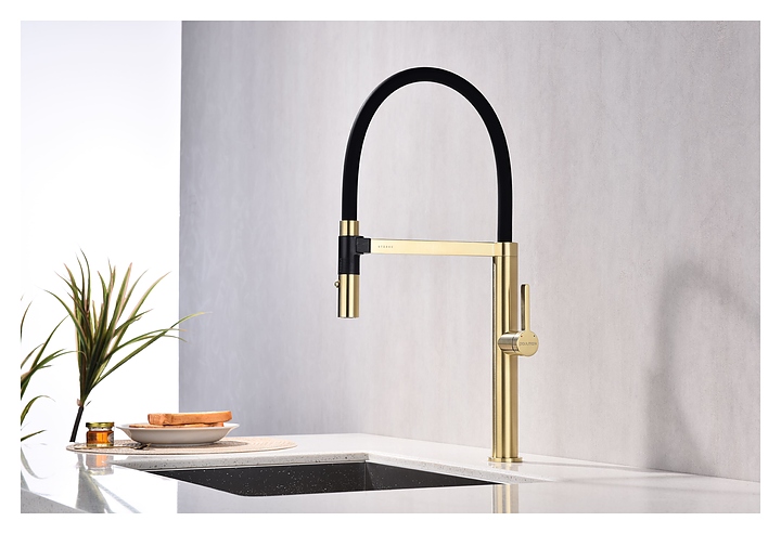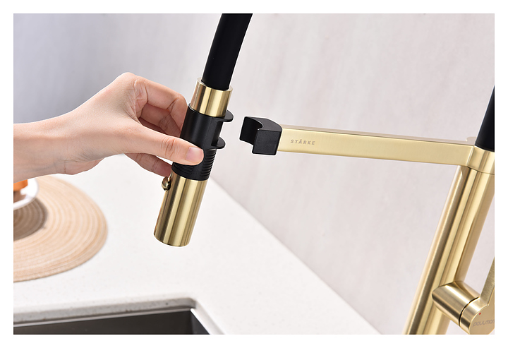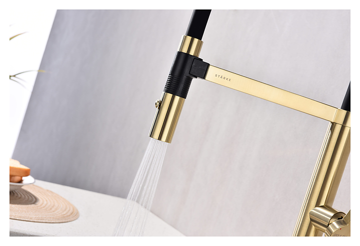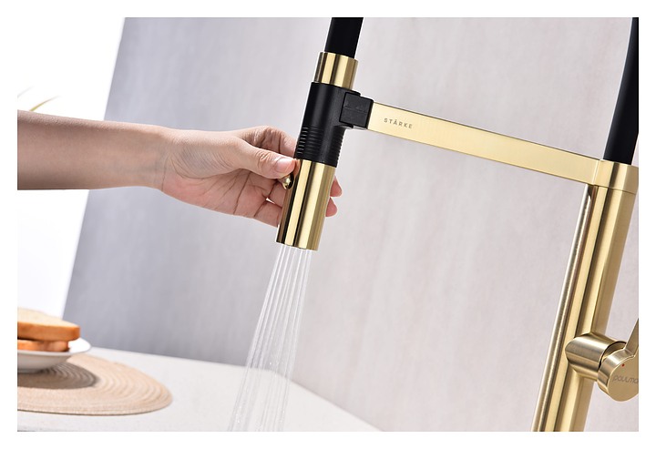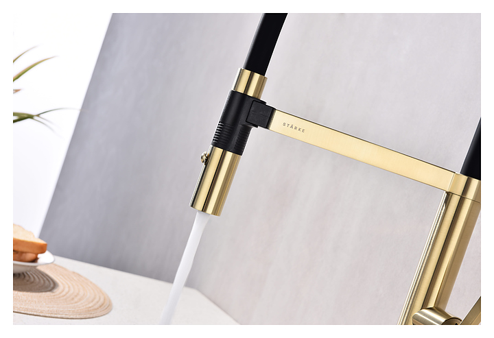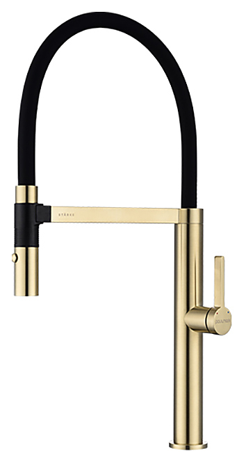 Смеситель Paulmark Leader Le214101-SBG предназначен для подачи горячей и холодной воды в кухонных помещениях. Модель оснащена гибким изливом и керамическим картриджем, обеспечивающим плавный ход рычага смесителя, контроль и точность при выборе напора и температуры воды. Изделие выполнено из латуни, отличающейся прочностью, долговечностью и устойчивостью к перепадам температуры, шланг - из силикона. Дополнительные характеристики: