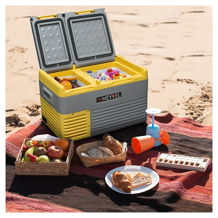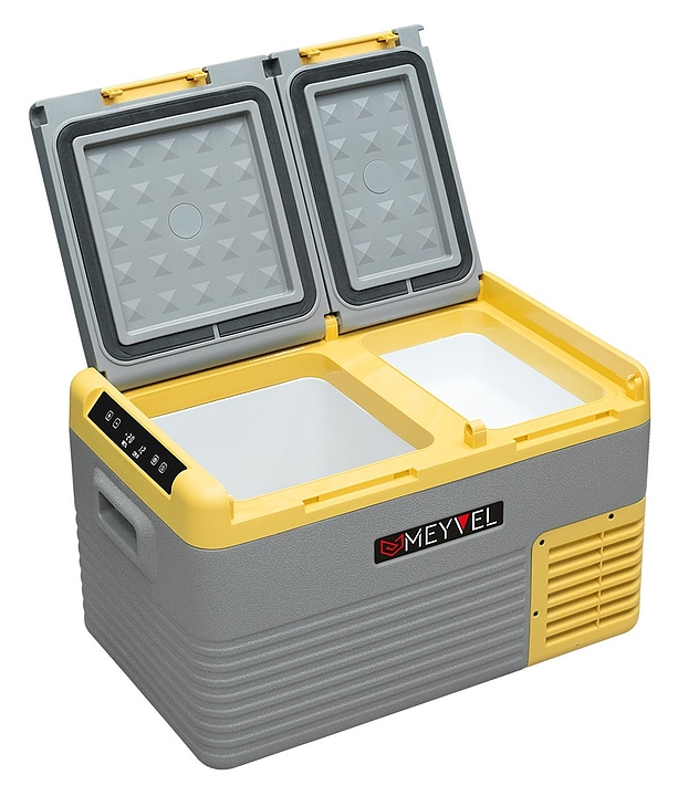 Переносной автохолодильник MEYVEL AF-K35D предназначен для охлаждения и глубокой заморозки, хранения и транспортировки продуктов питания и напитков в легковых и грузовых автомобилях, автодомах, специальной технике, лодках, катерах, яхтах, других видах транспорта и в быту. Модель оснащена 2 камерами, компрессором, электронным термостатом, подстаканниками, электронной панелью управления и дисплеем повышенной яркости. Внешняя облицовка корпуса выполнена из прочного пластика, теплоизоляция – пенополиуретан высокой плотности. Особенности: