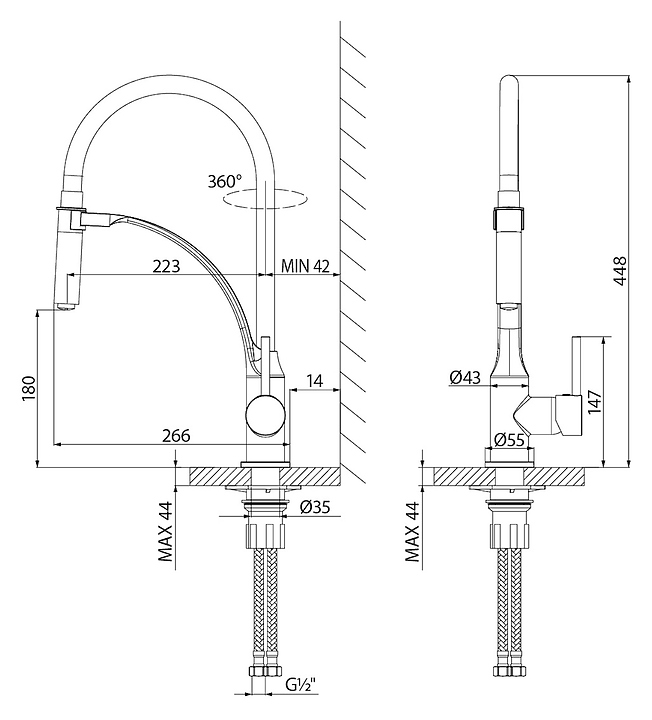 Смеситель для кухни LEMARK Soul LM6007BL с гибким изливом, черный