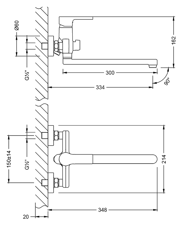 Смеситель для ванны и душа LEMARK Aura LM0651CH универсальный, с плоским поворотным изливом, хром
