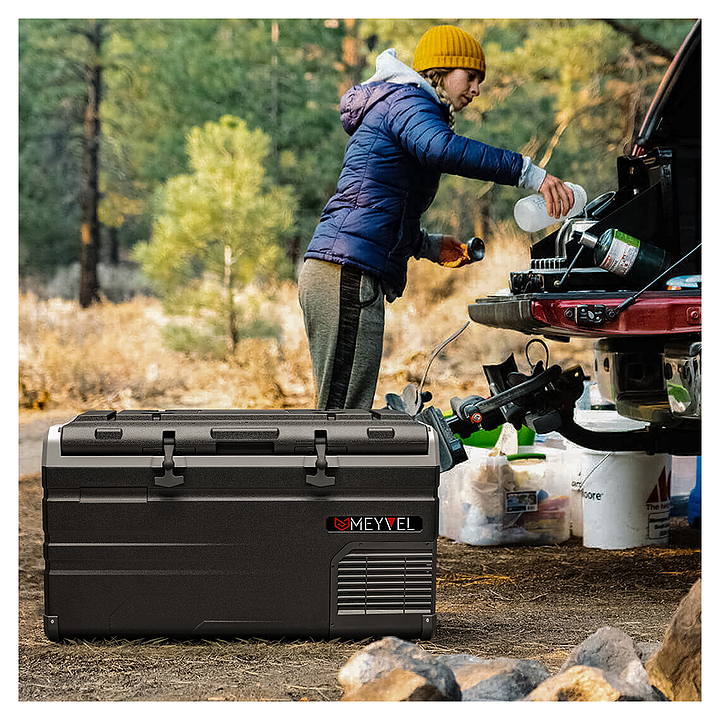 Автохолодильник MEYVEL AF-H80DD предназначен для охлаждения и глубокой заморозки, хранения и транспортировки продуктов питания и напитков в легковых и грузовых автомобилях, автодомах, специальной технике, лодках, катерах, яхтах, других видах транспорта и в быту. Модель оснащена компрессором, электронным термостатом, сенсорной панелью управления, внутренним освещением, съемной перегородкой, USB-разъемом, корзиной для продуктов, подстаканниками и ручками для переноски. Внешняя облицовка корпуса выполнена из прочного пластика, теплоизоляция – пенополиуретан высокой плотности. Особенности: