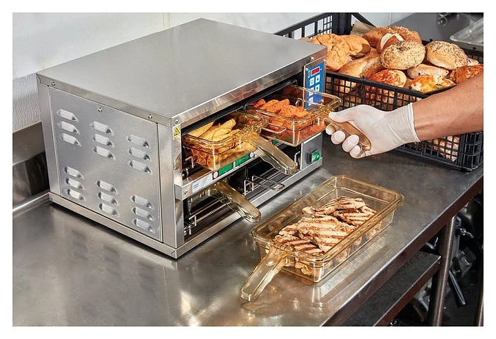 Гастроемкость Cambro 32HP2H 150 GN1/3х65 с двумя ручками используется на предприятиях общественного питания и торговли для приготовления широкого спектра блюд, демонстрации готовых блюд на линиях раздачи, заморозки, охлаждения и хранения продуктов в холодильных и морозильных шкафах. Изделие выполнено из высокопрочного поликарбоната. Особенности: