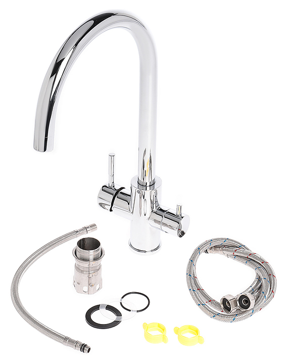 Смеситель Agger Zest A0700700 предназначен для подачи горячей и холодной воды в кухонных помещениях. Модель оснащена керамическим картриджем, обеспечивающим плавный ход рычага смесителя, контроль и точность при выборе напора и температуры воды. Фильтрованная вода поступает по встроенному изливу и не перемешивается с водопроводной. Аэратор экономит воду, насыщает ее воздухом и создает мягкую струю без брызг. Изделие выполнено из латуни, отличающейся прочностью, долговечностью и устойчивостью к перепадам температуры. В комплект поставки входят гибкая подводка и крепления. Особенности: