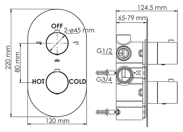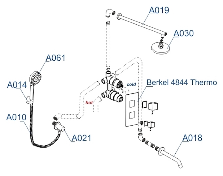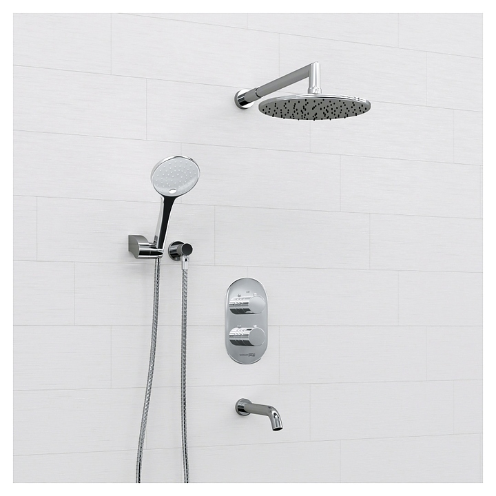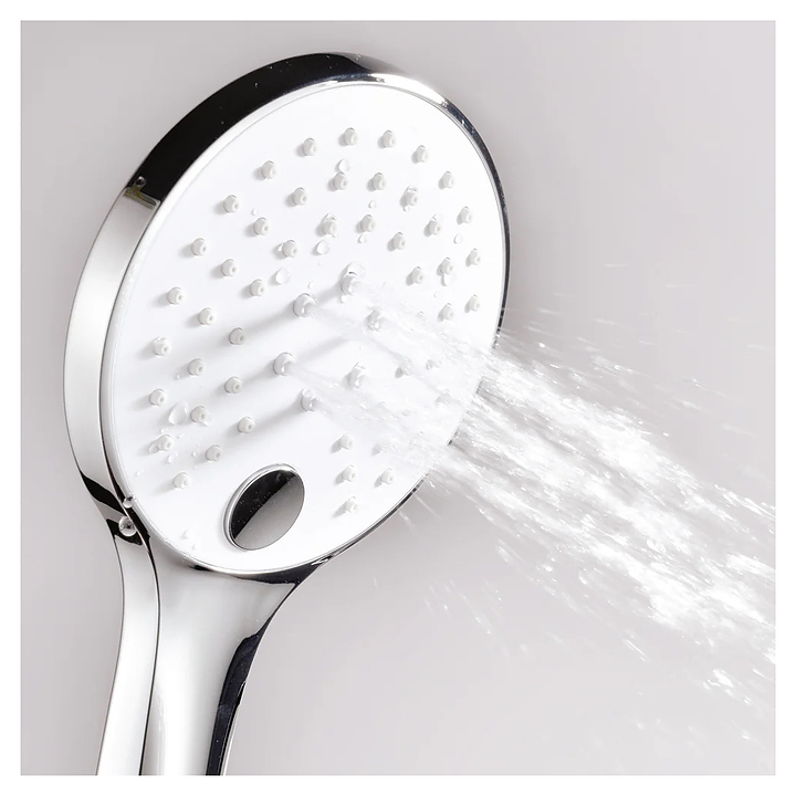 Встраиваемый душевой комплект Wasserkraft A174819 Thermo используется в ванных комнатах. Модель оснащена круглым верхним тропическим душем, кронштейном для верхнего душа, трехрежимным ручным душем с душевым шлангом и поворотным настенным держателем, изливом, смесителем, а также термостатическим картриджем, обеспечивающим поддержание необходимой температуры в независимости от давления воды. Изделие выполнено из латуни, отличающейся прочностью, долговечностью и устойчивостью к перепадам температур. В комплект поставки входит скрытая часть для установки. Комплектация: