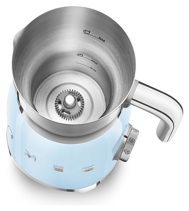 Вспениватель молока Smeg MFF11PBEU используется в частных домах и квартирах для приготовления молочной пены для кофейных напитков и горячего шоколада. Модель выполнена в стиле 50-х годов. Корпус и кувшин изготовлены из нержавеющей стали, крышка - из Tritan™ Renew, основание - из пластика. Режимы: