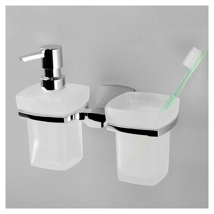 Держатель Wasserkraft Wern K-2589 предназначен для размещения зубных щеток и дозатора для жидкого мыла в ванной комнате. Аксессуары коллекции Wern идеально дополнят дизайн любой ванной комнаты. Модель оснащена держателем, стаканом для зубных щеток, дозатором для жидкого мыла, имеет скрытые крепления и монтируется на стену. Изделие выполнено из металла и матового стекла. В комплект поставки входят стакан, дозатор, держатель и уплотнительные пластиковые кольца. Особенности: