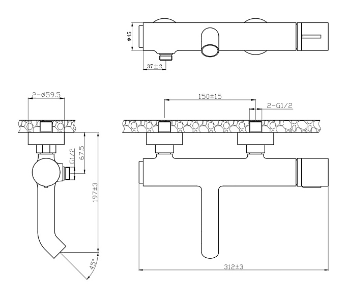 Смеситель для ванны и душа Bronze de Luxe Focus 24603BG