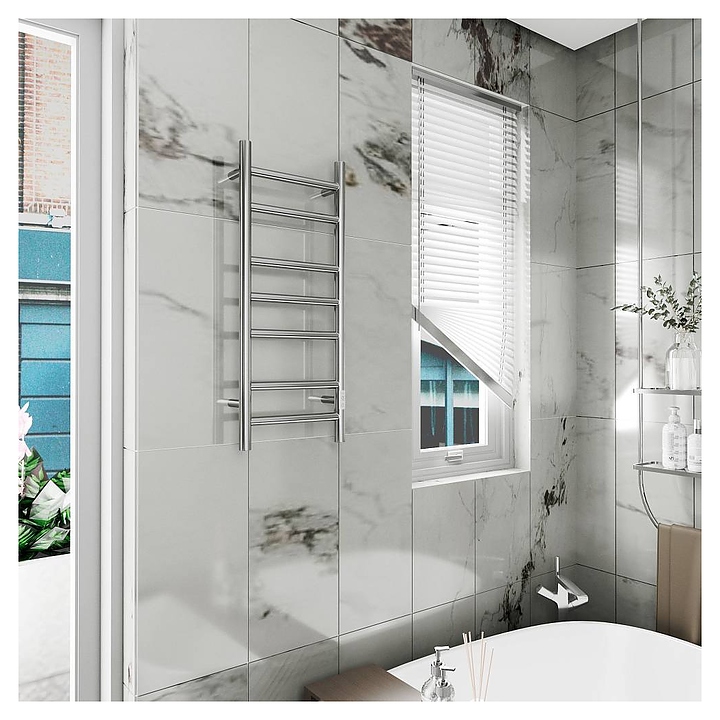 Электрический полотенцесушитель Bauedge Stil DB-0040 предназначен для подогрева и сушки полотенец, а также для обогрева ванных комнат в квартирах, коттеджах, частных домах. Модель оснащена таймером. Изделие выполнено из нержавеющей стали, отличающейся прочностью, долговечностью и устойчивостью к коррозии. В комплект поставки входят полотенцесушитель и кабель с вилкой. Особенности: