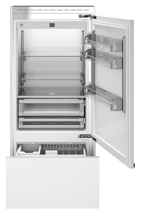 Холодильник Bertazzoni REF905BBRPTT предназначен для замораживания, охлаждения и хранения скоропортящихся продуктов и напитков в частных домах, квартирах, офисах и отелях. Возможность встраивания решает проблему ограниченного пространства. Модель оснащена холодильной камерой с 3 регулируемыми по высоте полками и 2 выдвижными ящиками, 3 полками на дверце, морозильной камерой с 2 ящиками, светодиодными лампами освещения и внутренней сенсорной панелью управления с цифровым дисплеем. Корпус выполнен из металла, полки - из стекла, внутренняя отделка камер - из белого алюминия, дверь - без отделки, предназначена для навески мебельных фасадов. Особенности: