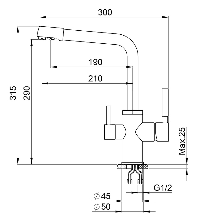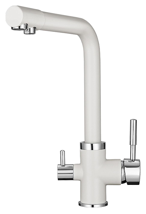 Смеситель Point PN3103W предназначен для подачи горячей и холодной воды в кухонных помещениях. Модель оснащена подключением к фильтру для питьевой воды и керамическим картриджем, обеспечивающим плавный ход рычага смесителя, контроль и точность при выборе напора и температуры воды. Изделие выполнено из латуни, которая отличается прочностью, долговечностью и устойчивостью к перепадам температуры. В комплект поставки входят гибкая подводка, переходник для подключения фильтра с питьевой водой и крепления. Особенности: