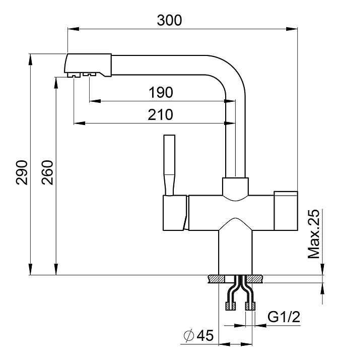 Смеситель Point PN3104AL предназначен для подачи горячей и холодной воды в кухонных помещениях. Модель оснащена подключением к фильтру для питьевой воды и керамическим картриджем, обеспечивающим плавный ход рычага смесителя, контроль и точность при выборе напора и температуры воды. Изделие выполнено из латуни, которая отличается прочностью, долговечностью и устойчивостью к перепадам температуры. В комплект поставки входят гибкая подводка, переходник для подключения фильтра с питьевой водой и крепления. Особенности: