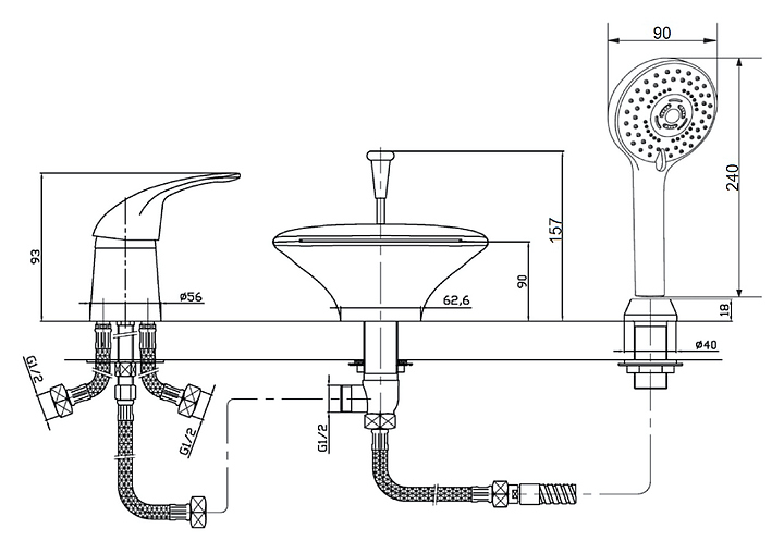 Смеситель на борт ванны ORANGE Iris M41-333b на 3 отверстия, черный