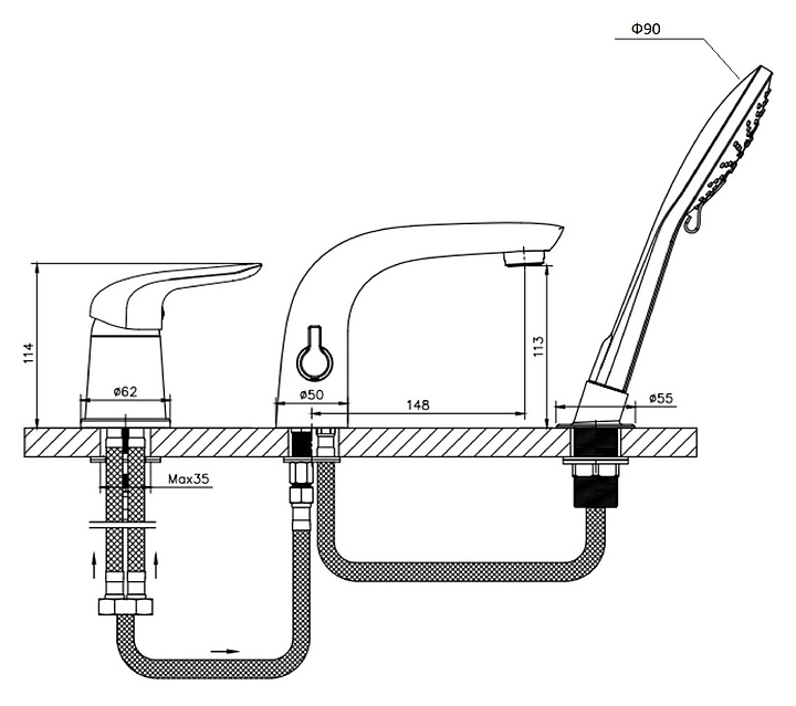 Смеситель на борт ванны ORANGE Otto M22-333w на 3 отверстия, белый