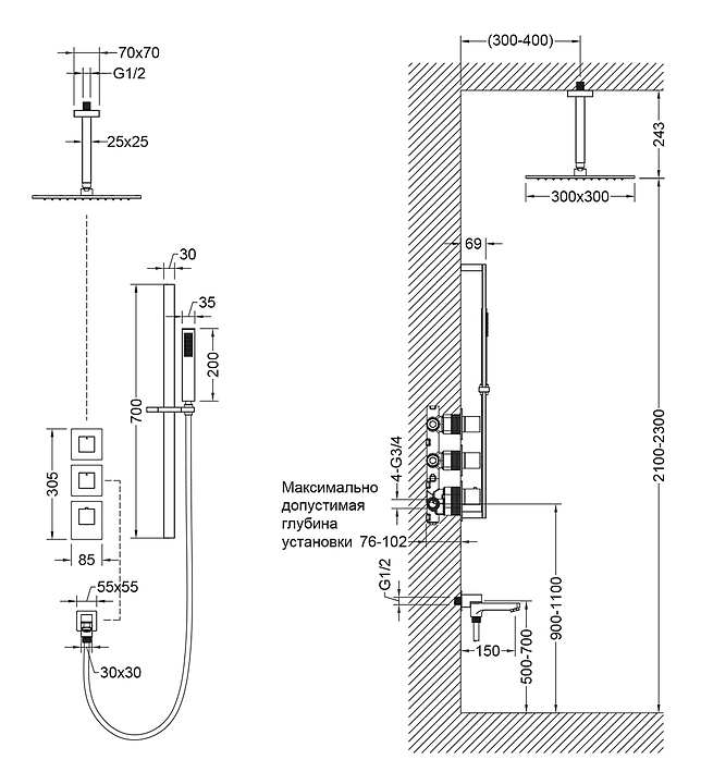 Душевой комплект TIMO Selene SX-2239/17SM используется в ванных комнатах. Модель оснащена квадратным верхним душем и продолговатой ручной лейкой. Термостат гарантирует подачу воды заданной температуры, что исключает ожоги. Изделие выполнено из латуни, которая отличается прочностью, долговечностью и устойчивостью к перепадам температуры. Комплектация: