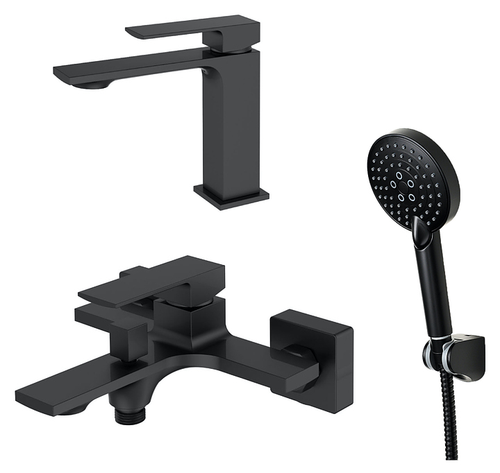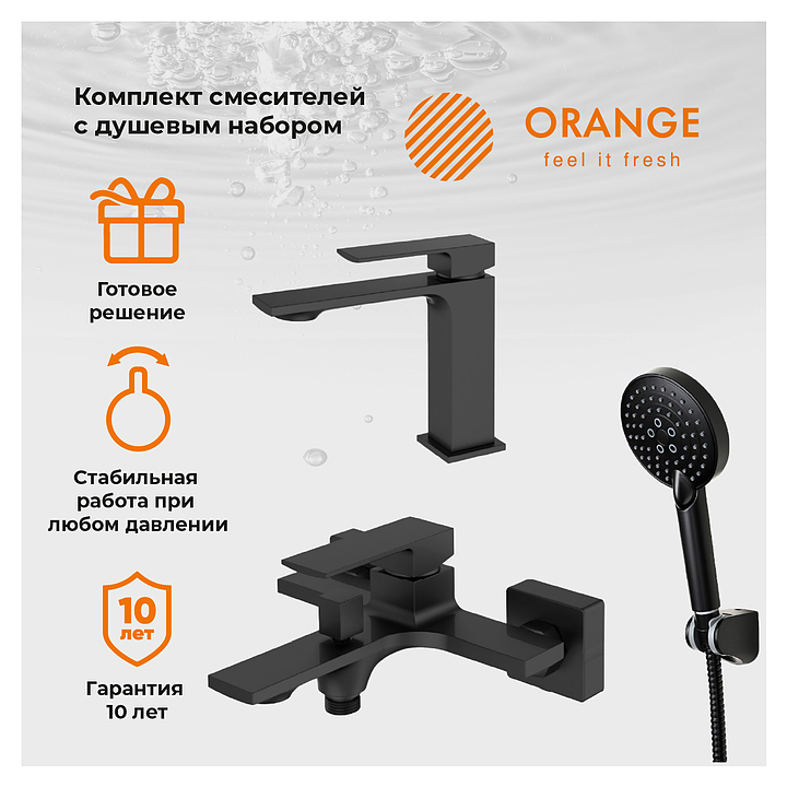 Комплект смесителей с душевым гарнитуром ORANGE Lutz M04-311b черный матовый