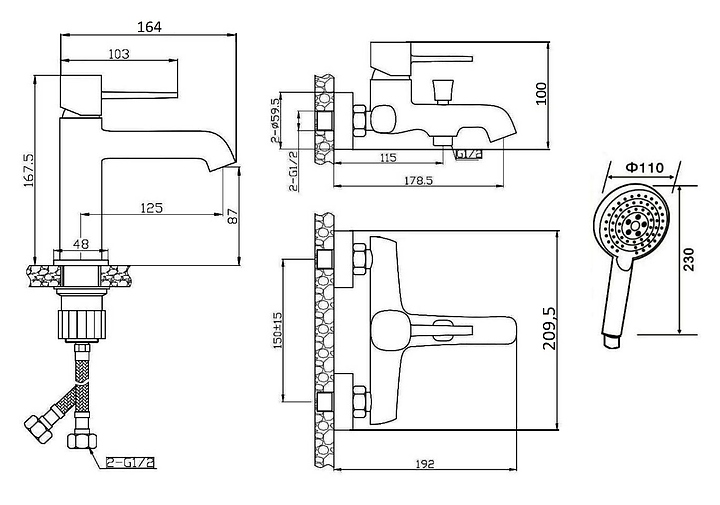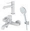 Набор ORANGE Karl M05-311w предназначен для использования в ванных комнатах. Модель оснащена смесителем для раковины и ванны с душем, настенным держателем для ручного душа, ручной лейкой и шлангом в металлической оплетке с защитой от перекручивания, а также керамическим картриджем, обеспечивающим плавный ход рычага смесителя, контроль и точность при выборе напора и температуры воды, и пластиковым аэратором для создания мягкой ровной струи без разбрызгивания. Изделие выполнено из латуни, отличающейся прочностью, долговечностью и устойчивостью к перепадам температуры, ABS-пластика и нержавеющей стали. В комплект поставки входят смеситель для раковины, смеситель для ванны с душем, держатель для ручного душа, ручная лейка, шланг и гибкая подводка. Особенности: