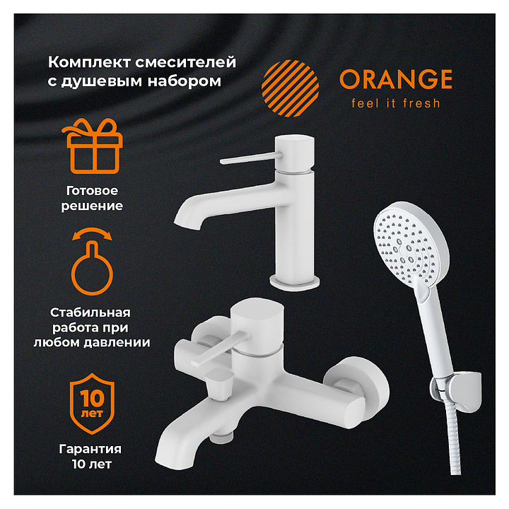 Комплект смесителей с душевым гарнитуром ORANGE Karl M05-311w белый матовый