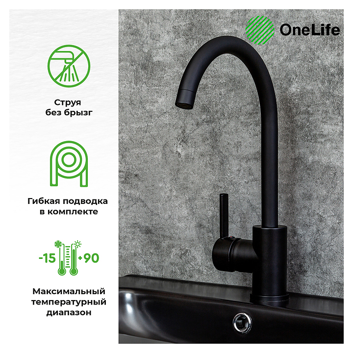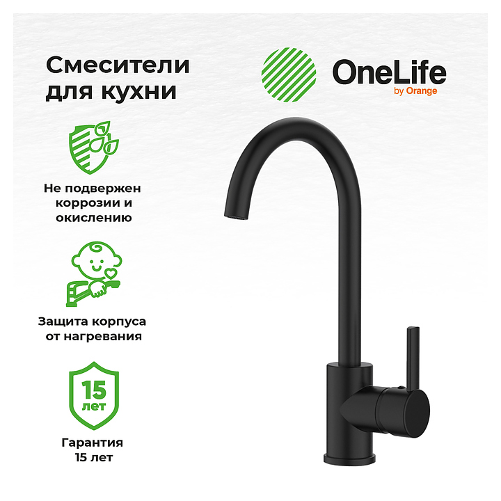 Смеситель для кухни ORANGE 1Life (OneLife by Orange) P04-001b черный