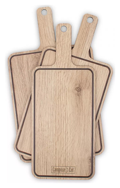 Разделочная доска ComposeEat DRRJ37152094OA4 выполнена из бумажного композитного материала, сохраняющего целостность при падении, ударах и механической нагрузке, устойчивого к резким перепадам температур, не подверженному деформации, выцветанию, сколам, трещинам и механическим повреждениям. Модель оснащена желобом для слива жидкости и ручкой с отверстием для подвешивания. Особенности:
