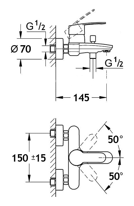 Смеситель для ванны с душем AQUAme Prato AQMP6132