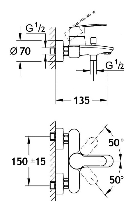Смеситель для ванны с душем AQUAme Prato AQMP6112