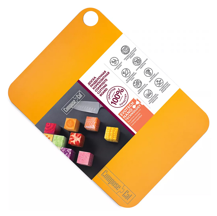 Разделочная доска ComposeEat DR24181029OA4 выполнена из бумажного композитного материала, сохраняющего целостность при падении, ударах и механической нагрузке, устойчивого к резким перепадам температур, не подверженному деформации, выцветанию, сколам, трещинам и механическим повреждениям. Модель оснащена отверстием для подвешивания. Особенности: