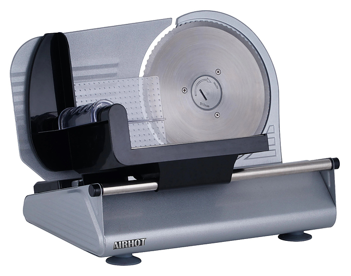 Слайсер Airhot SL 190E предназначен для нарезки мяса, сыра, колбасных изделий, картофеля для домашних чипсов, капусты, моркови баклажанов и кабачков для салата и других продуктов питания на ровные и равные ломтики на предприятиях общественного питания и торговли. Модель оснащена скользящей платформой для пищевых продуктов, ручкой регулировки толщины ломтиков и резиновыми ножками-присосками. Корпус и толкатель выполнены из пластика, каретка и нож - из нержавеющей стали. Слайсер не предназначен для нарезки продуктов глубокой заморозки, костей и упакованных продуктов. В комплект поставки входит толкатель. Дополнительные характеристики: