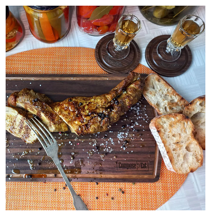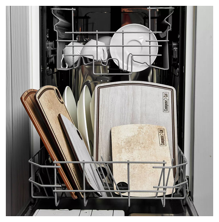 Сервировочная доска ComposeEat DSJ37210655KL6 выполнена из бумажного композитного материала, сохраняющего целостность при падении, ударах и механической нагрузке, устойчивого к резким перепадам температур, не подверженному деформации, выцветанию, сколам, трещинам и механическим повреждениям. Модель оснащена желобом для слива жидкости и нескользящими силиконовыми ножками. Особенности: