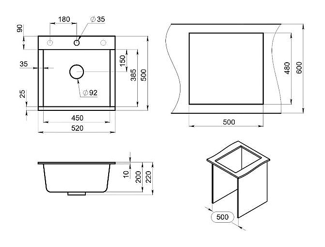 Мойка ESTETICA 5201 предназначена для рационального планирования рабочего места на кухне. Широкая задняя поврехность предназначена для установки смесителя и размещения аксессуаров. Изделие выполнено из кварца, который отличается способностью поглощать шум воды, стойкостью к действию моющих средств, экологичностью и долговечностью, разделочная доска - из ясеня. В комплект поставки входят слив-перелив, сифон и разделочная доска. Дополнительные характеристики: