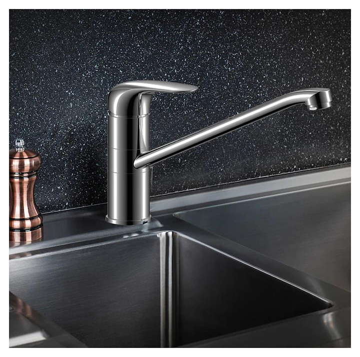 Смеситель OLIVE'S CASTILLA 07430CS предназначен для подачи горячей и холодной воды в кухонных помещениях. Керамический картридж обеспечивает плавный ход рычага смесителя, контроль и точность при выборе напора и температуры воды. Изделие выполнено из латуни, которая отличается прочностью, долговечностью и устойчивостью к перепадам температуры. Дополнительные характеристики: