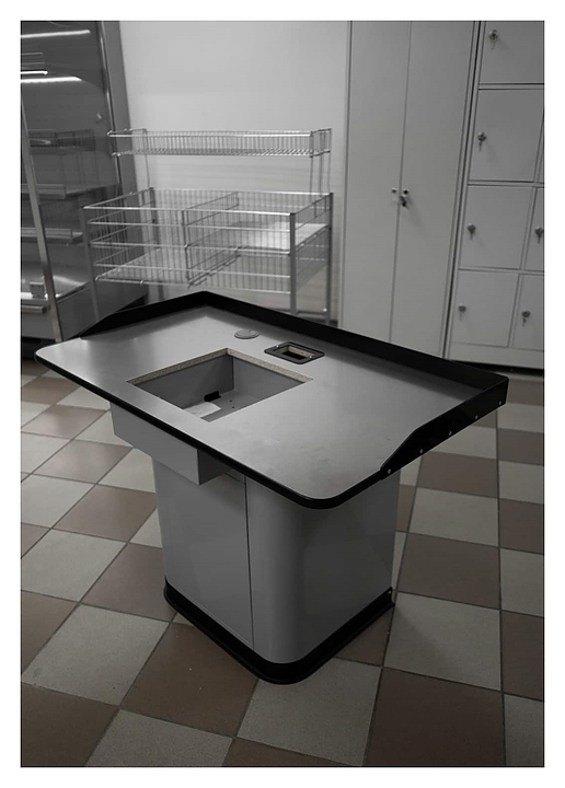 Кассовый бокс MAGMA Self-checkout ТКС02.00.000 предназначен для самостоятельного обслуживания клиентов в минимаркетах и на других предприятиях торговли малой площади. Компактный дизайн конструкции позволяет оптимизировать рабочее пространство. Модель оснащена дверцей с замком, столешницей с вырезами под весы и стойку монитора, задним и боковыми бортами. Корпус выполнен из листовой стали с покрытием порошковой краской, рабочая зона – из нержавеющей стали с текстурой поверхности «лен». Дополнительные характеристики: